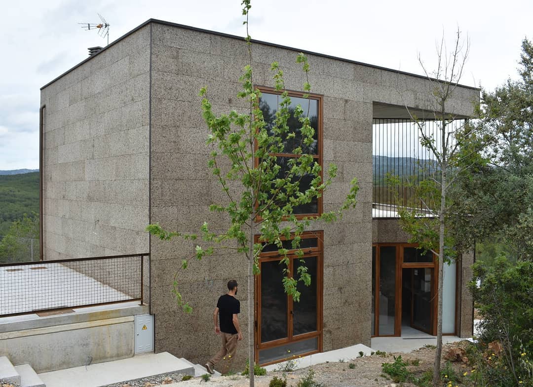 In plaats daarvan koos de architect ervoor om het huis te ontwerpen als één kubiek volume met twee verdiepingen om het beter te integreren in de omgeving. Het gebouw opent zich naar het noorden, met uitzicht op de berg Montserrat en een prachtig uitzicht op het park.