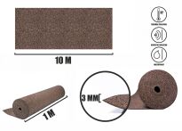 Rubberkurk onderlaag 3 mm (1mx10m) dient als afdichtingsmateriaal. Gemaakt van natuurlijke kurkkorrels en rubber. Kurk is samendrukbaar en flexibel, terwijl rubber een hoge mechanische sterkte en dimensionale stabiliteit heeft. Standaard bestaat het kurk-rubbermengsel voor 70% uit kurk en voor 30% uit rubber.